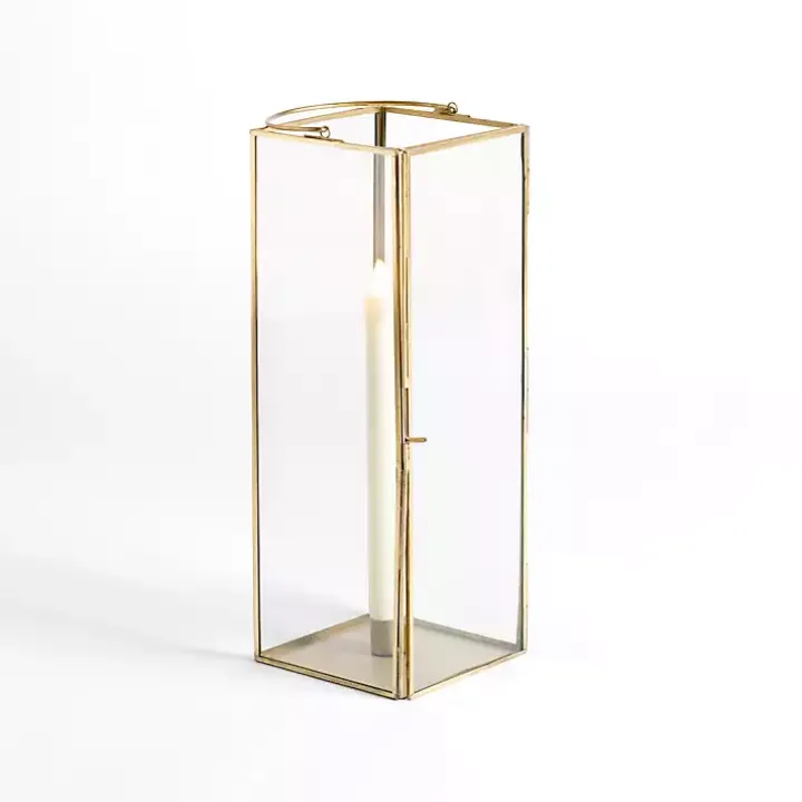 Elevate your porch or living space with our Gold Iron & Glass Taper Candle Lantern! This lantern features a gold finish and large glass panes to give it a chic look. You’ll love adding either wax or flamess LED taper candles to bring a warm glow to your home!