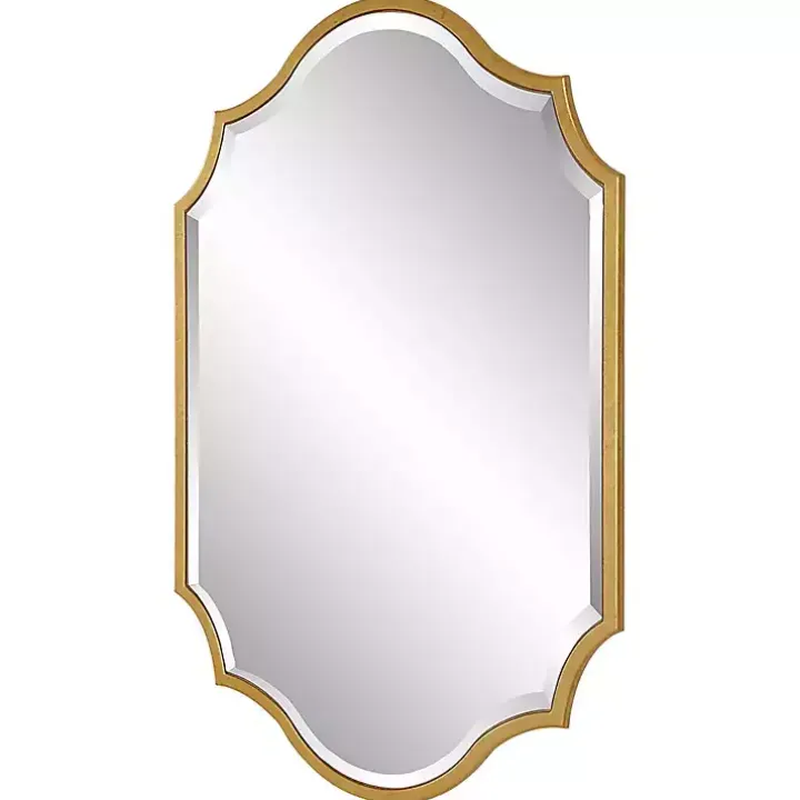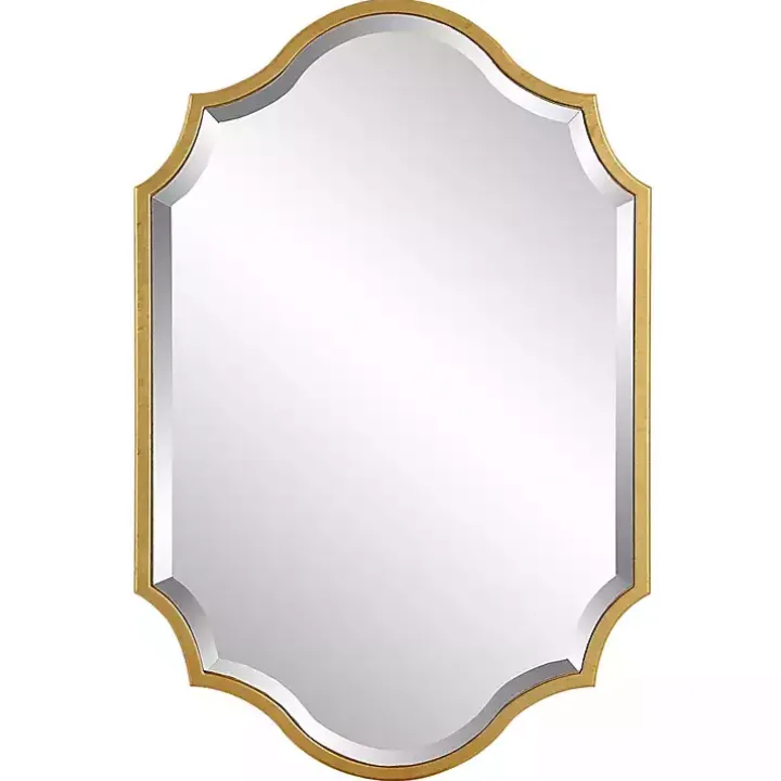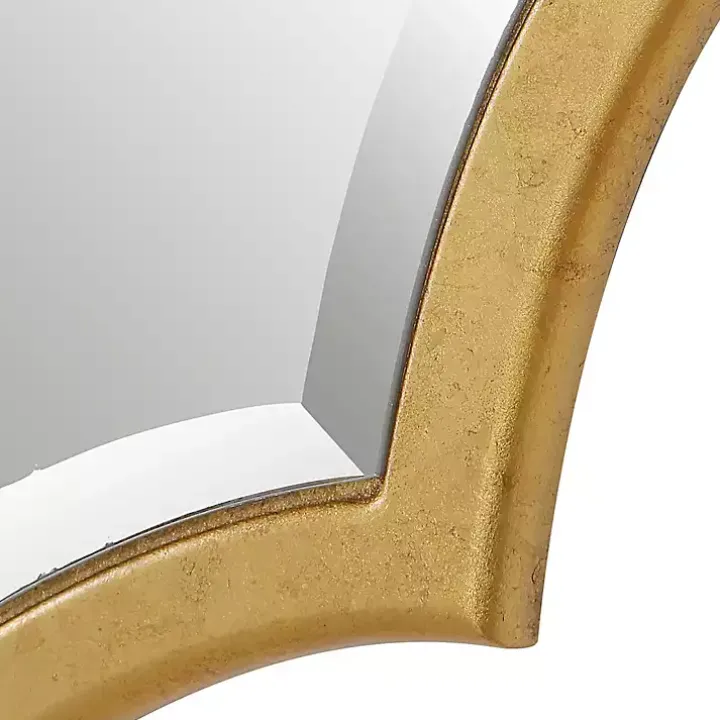Put a touch of elegance on your walls with this Gold Leaf Curved Metal Wall Mirror. Its stunning finish and unique shape will add beauty to your entryway, living room, or bedroom!