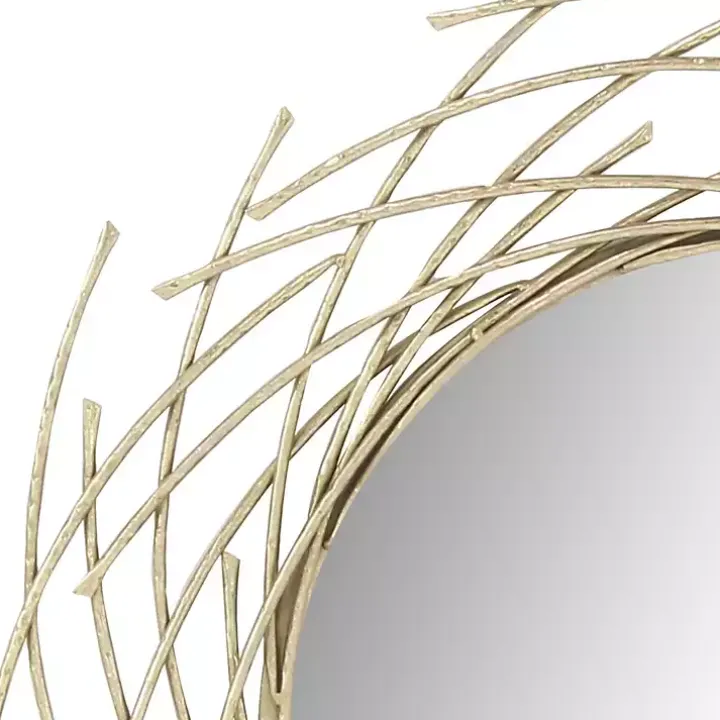 The Gold Metal Glam Layered Mirror is beautifully framed by twig-like bars, resulting in a design that resembles a nest. While adding unique texture and depth to any wall, it makes an eye-catching statement!
