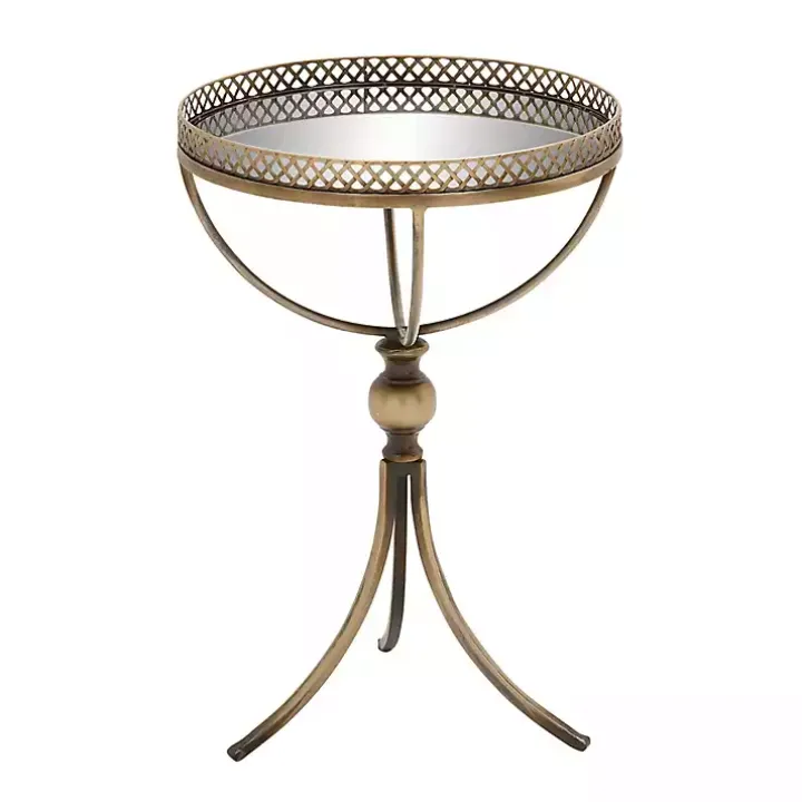 This Gold Mirror Top Metal Accent Table will look perfect next to your sofa or chair. Its gold finish and vintage-inspired style gives it a classic element. Plus, its mirror top makes it one-of-a-kind.