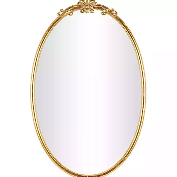 Elevate your entryway, hall, or mantel with this Gold Oval Baroque Wall Mirror. Its stunning, golden elegance is sure to bring a timeless beauty to your home!