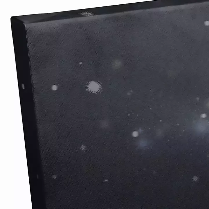 Immerse yourself in the calm yet captivating view of this Gold Tree Winter Landscape Canvas Art Print. Illuminated by a starry sky, this moody scene captures the peace and quiet of snowfall in the night.
