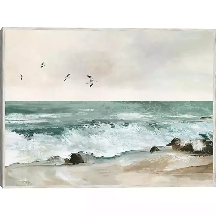 With this Graceful Sea Framed Canvas Art Print, you can almost hear the waves crashing along the rocky shore. This beautiful coastal scene will exude a calming energy throughout your home.