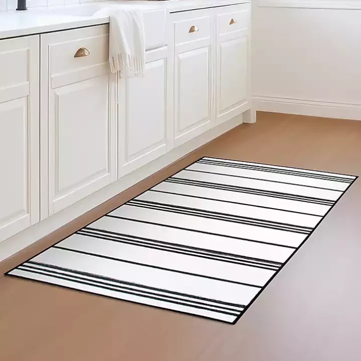 With its simple, modern design this Gray and White Stripe Washable Area Rug will instantly update your space. Its neutral tones are ideal for a variety of decor styles!