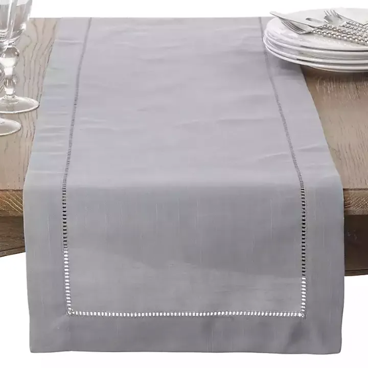 This table runner will take your table setting from simple, to simply stunning. The Gray Classic Hemstitch Border Polyester Runner will show off any tabletop.