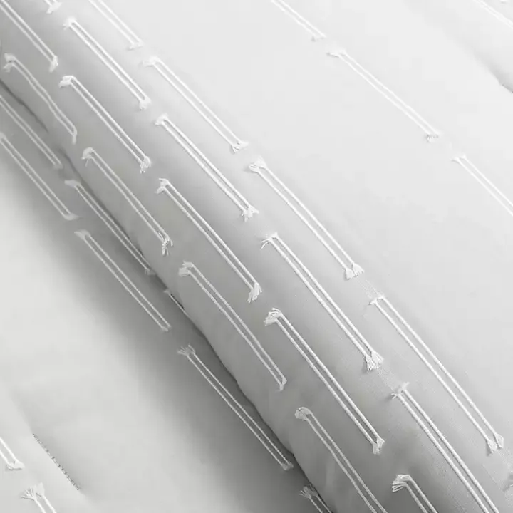 The Gray Clipped Stripe 3-pc. Cali King Comforter Set features a subtle yet chic texture that combines modern flair with traditional charm. Its neutral hue and timeless design will blend with a variety of bedroom aesthetics.