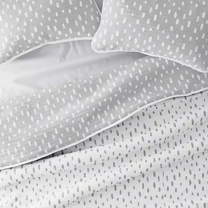 Go from cool gray to crisp white with this Gray Dotted Reversible 3-pc. King Quilt Set. Featuring a two-sided design, this set allows you to freshen up your bedroom in a snap!