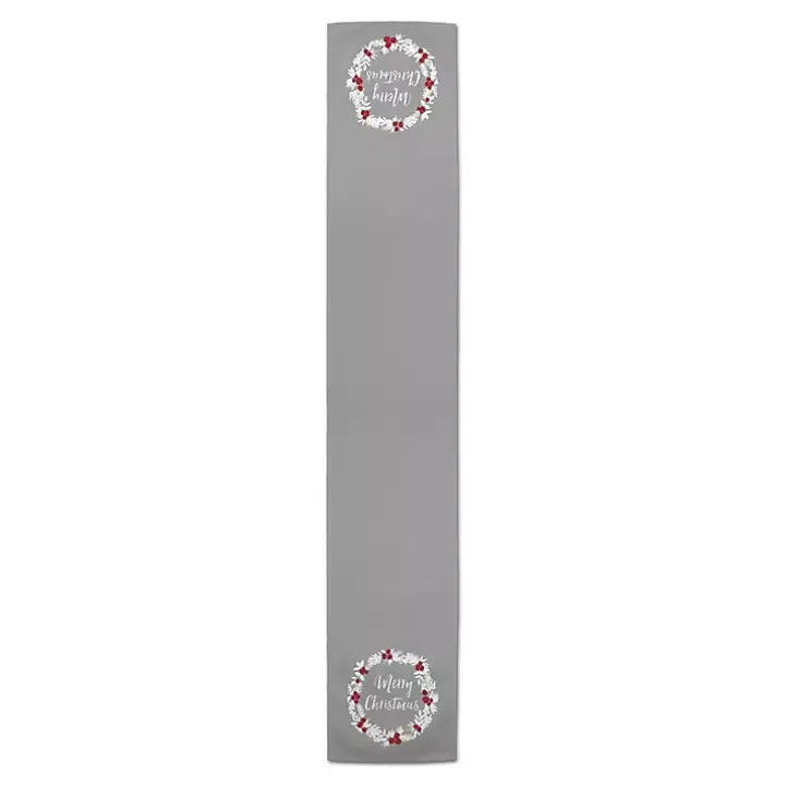 Set the stage for your turkey and casseroles to shine with our Gray Merry Christmas Wreath Table Runner. This adorable design is perfect for your home!