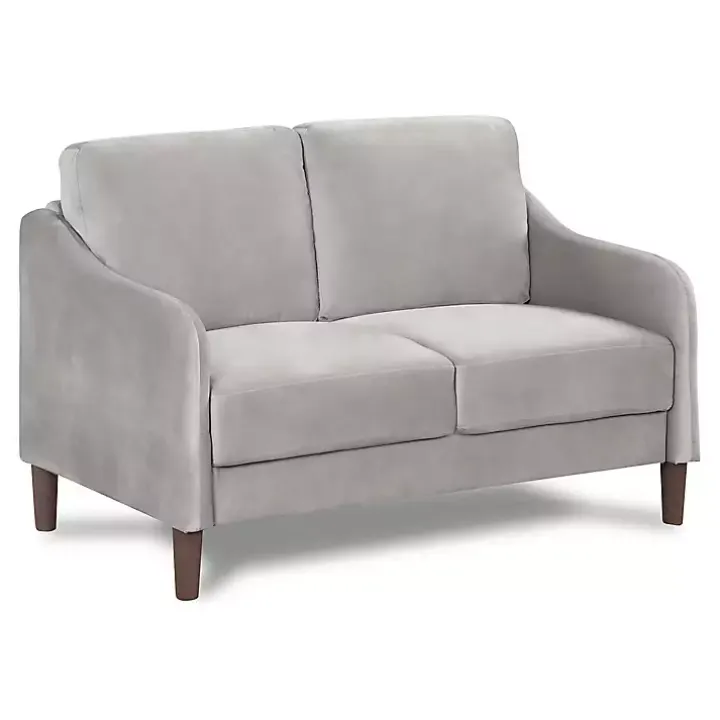 This Gray Velvet Upholstered Modern Loveseat is the perfect blend of style and comfort! This loveseat is ideal for adding extra seating in your home without compromising lots of space. You’ll love its contemporary look and soft, velvety feel!