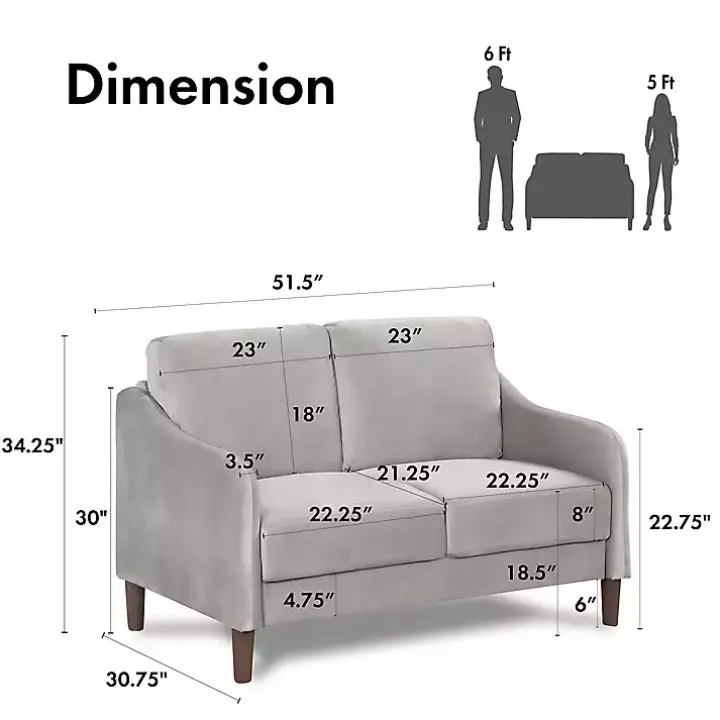 - Loveseat measures 51.5W x 30.75D x 34.25H in.; seat height: 18.5 in.