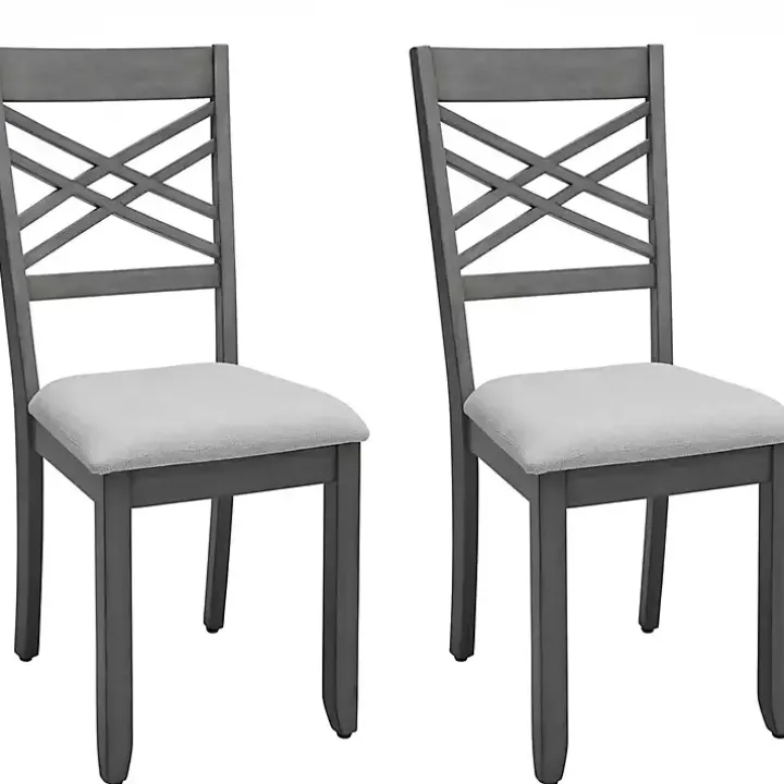 Add a rustic touch to your dining room with these Graywash Wood X-Back Dining Chairs! Their graywash finish and antique white cushions make these chairs perfect for a farmhouse style home.