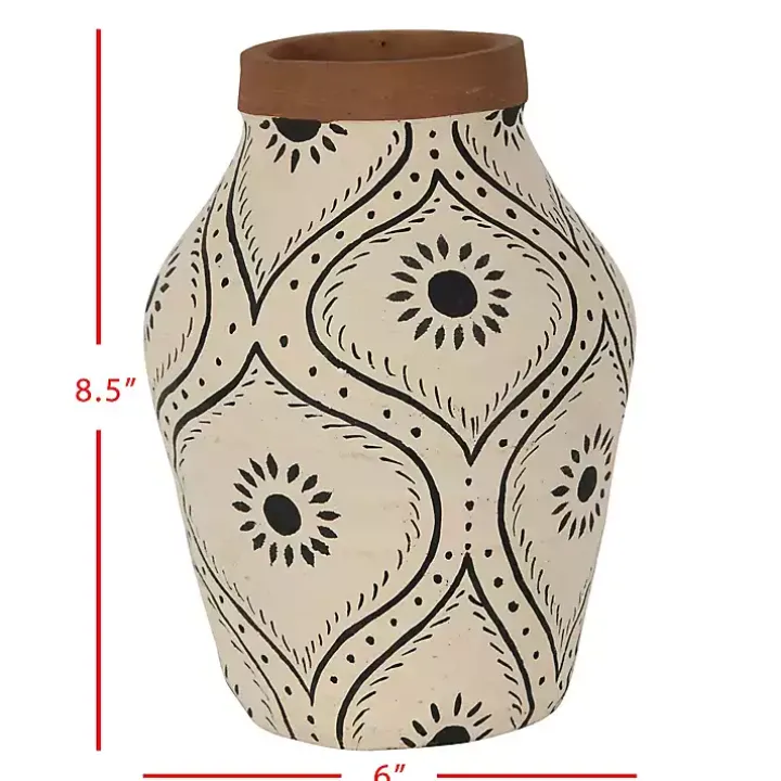This Green and White Floral Terracotta Vase will add a beautiful, earthy element to your space. Its ornate style looks great on its own or filled with faux greenery!