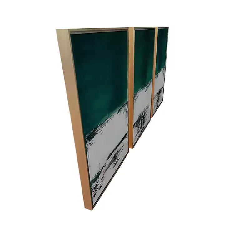 This trio of Green Malachite Canvas Art Prints will make a sophisticated statement anywhere from your dining room to your office. Showcasing rich green hues, abstract designs, and sleek, gold frames, this set embodies modern elegance.