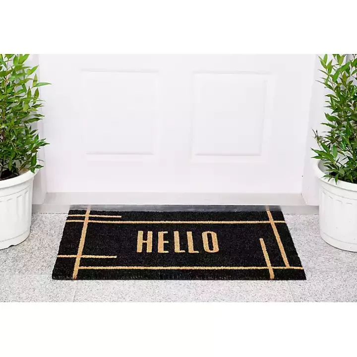 Give guests a friendly welcome with this Hello Black Linear Doormat. Its oversized design will cover a large area and help keep dirt out of your home!