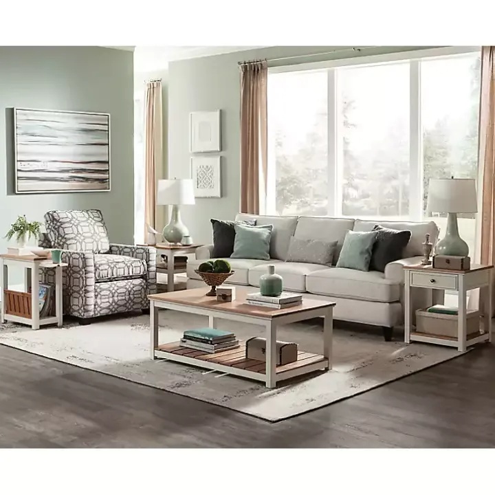 Our Ivory and Natural Wood Magazine Shelf Accent Table features a two-tone design that complements any farmhouse, cottage, or coastal style! You’ll love how the pull-out drawer provides extra table space for small decorative accents.