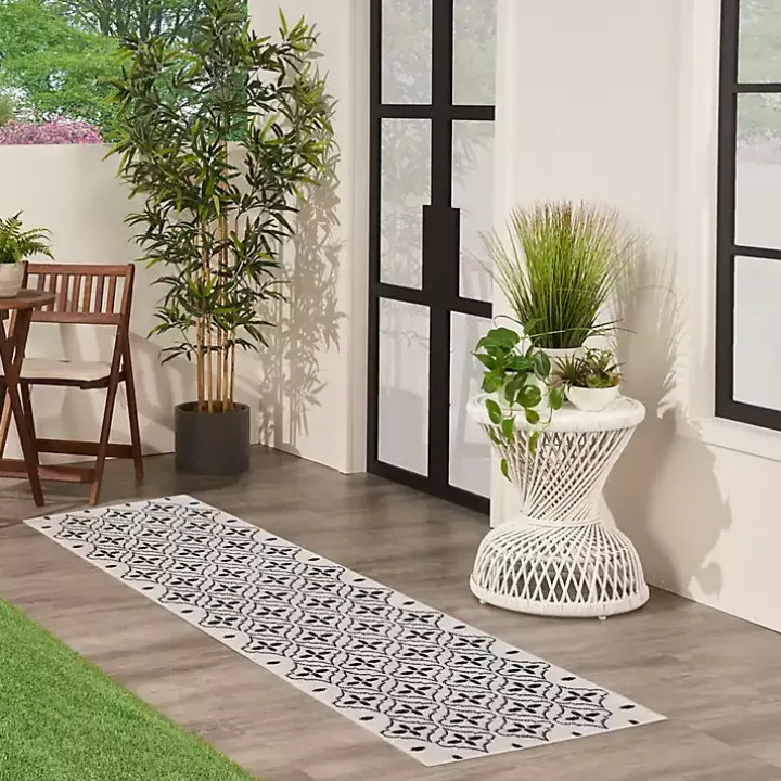Add our Ivory & Black Quatrefoil Indoor/Outdoor Runner for a simple yet stylish upgrade to any room in your home! This sophisticated runner is perfect for hallways, backyard patios, or anywhere in between!
