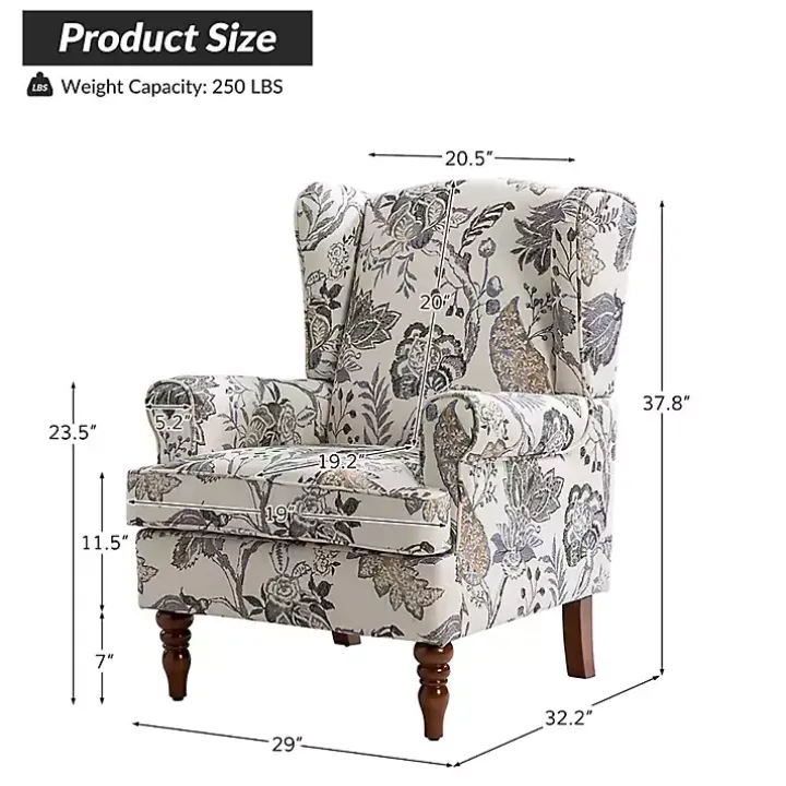 Refresh your space with classic charm and elegance with this Ivory Floral Brocade Wingback Ella Armchair! The traditional design complements any space, from formal to casual. From the soft fabric to the supportive cushion, this chair is perfect for a cozy reading nook or living room!