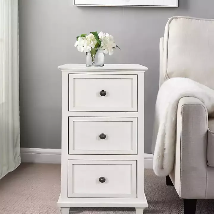 Utilize even the smallest spaces in your home in a chic way! You’ll love how this Ivory Slim Wooden 3-Drawer Side Table looks next to a couch or beside a bed.