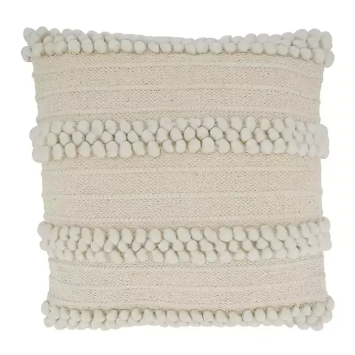This Ivory Striped Pom Pom Pillow will add a simple touch of texture to any sofa or chair. With its neutral shades, it will complement any style of furniture!