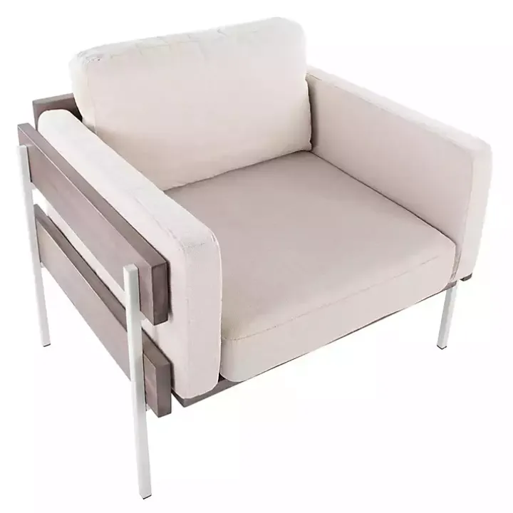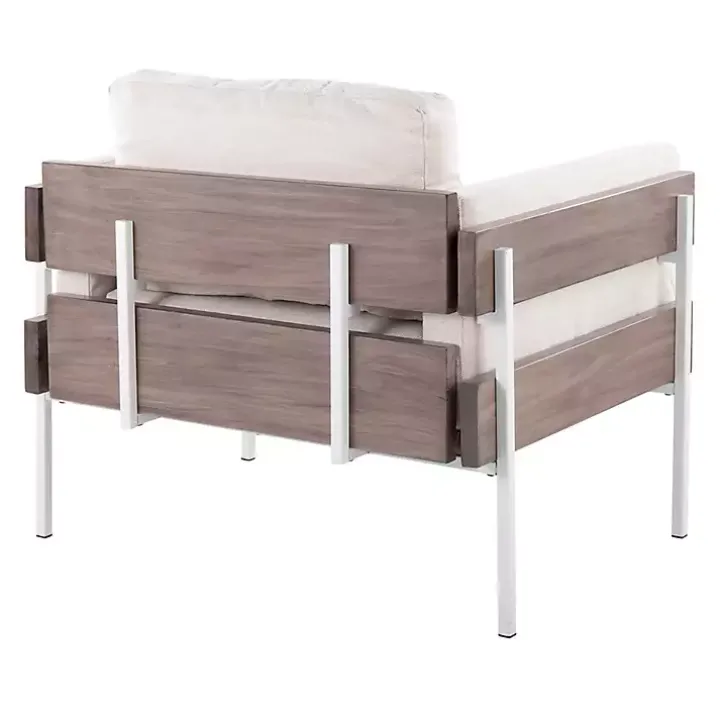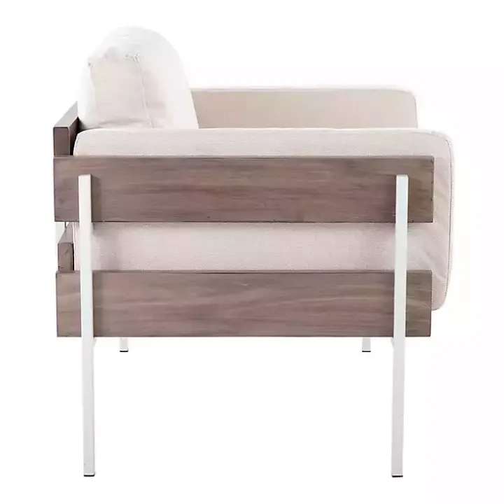 You’ll love the style and comfort of this Ivory Upholstered Gray Wood Accent Chair! With a modern shape and unique wood details, this modern farmhouse chair will elevate any room in your home!