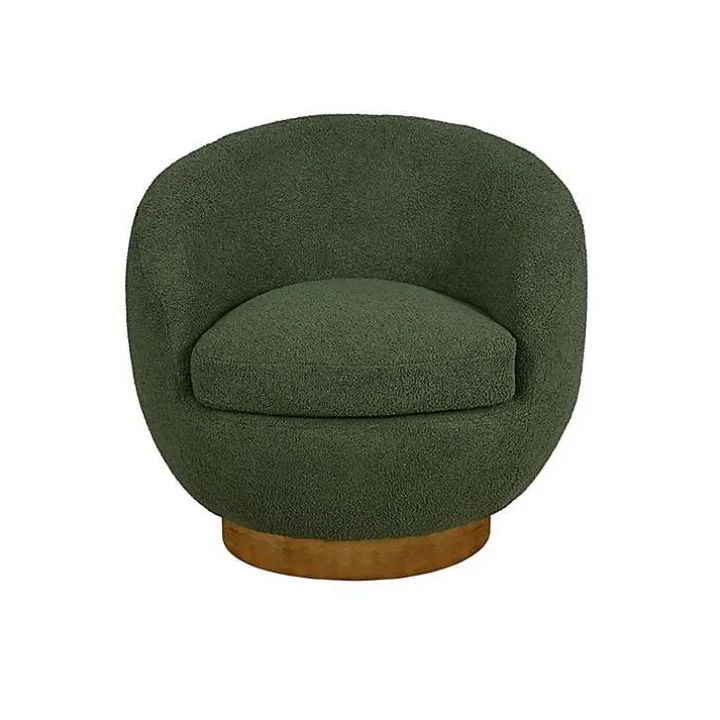 Indulge in luxury with this Jessel Green Sherpa Swivel Chair with Wood Base! Its inviting barrel back design in soft shearling fabric ensures comfort and coziness. Enjoy smooth 360 degree rotation on the stylish wood swivel base!