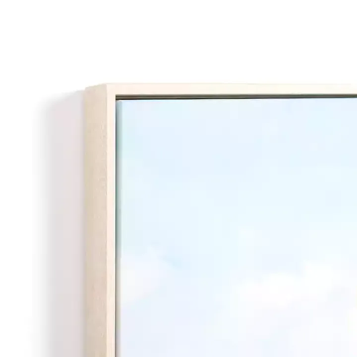 Sunny beach days come to life in this Lady by the Sea Framed Canvas Art Print. It perfectly captures the breezy, laid-back feeling of w alk by the ocean!