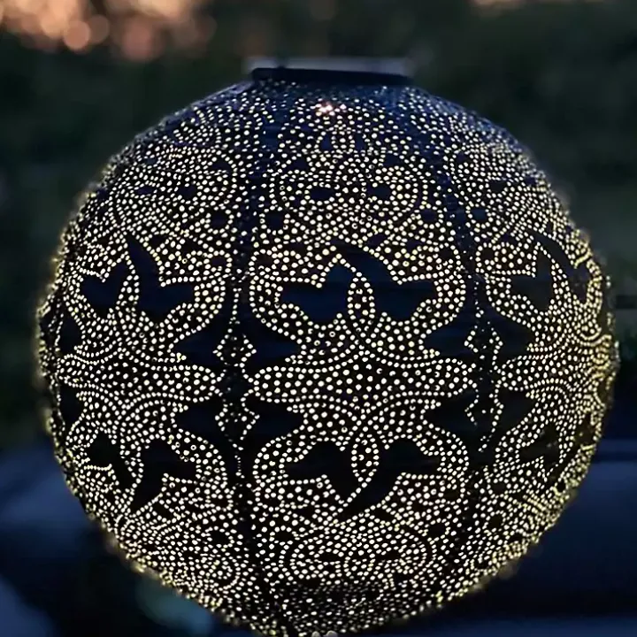 Bring a glow to your backyard oasis with this LED Round Dark Blue II Outdoor Hanging Lantern. While beautifully illuminating the intricate patterns, it makes an alluring statement.