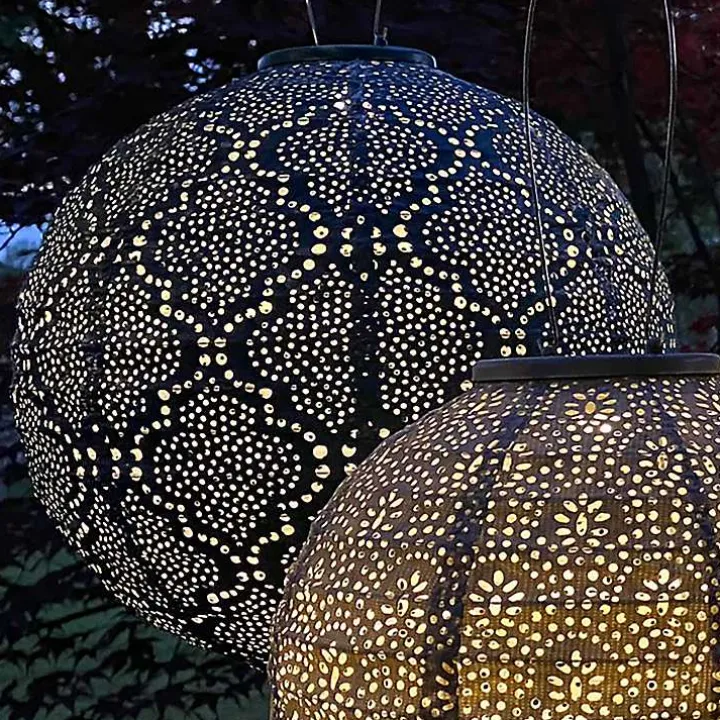 Bring a glow to your backyard oasis with this LED Round Sea Blue Outdoor Hanging Lantern. While beautifully illuminating the intricate patterns, it makes an alluring statement.