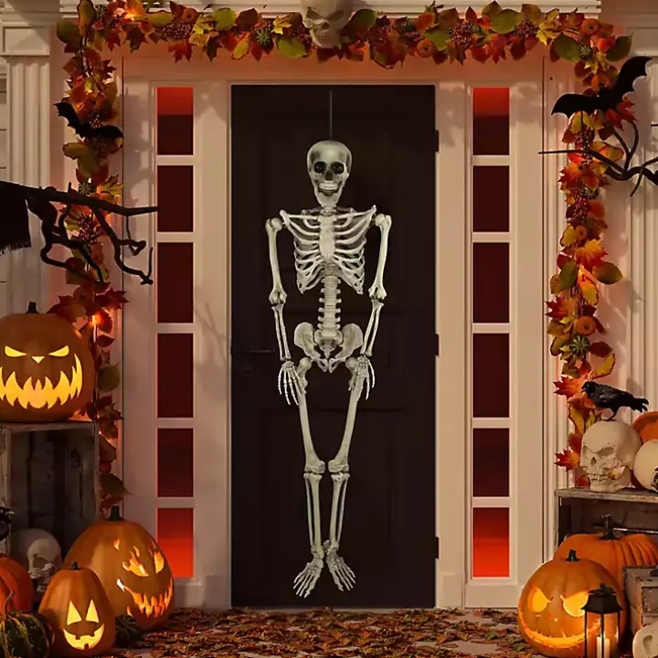 At 5 feet tall, this Life Size Outdoor Skeleton Decoration will bring an eerie presence to your haunted house. Its realistic look will give guests and trick-or-treaters a playful scare!