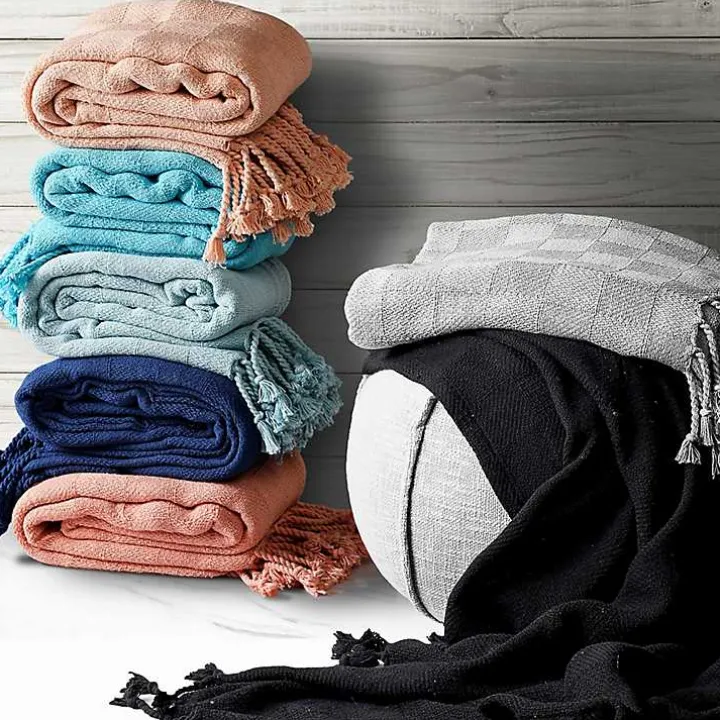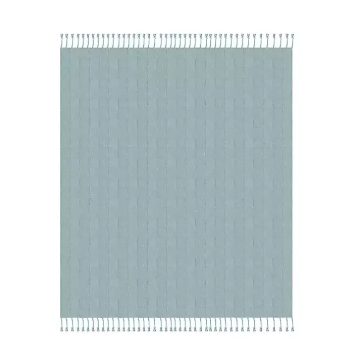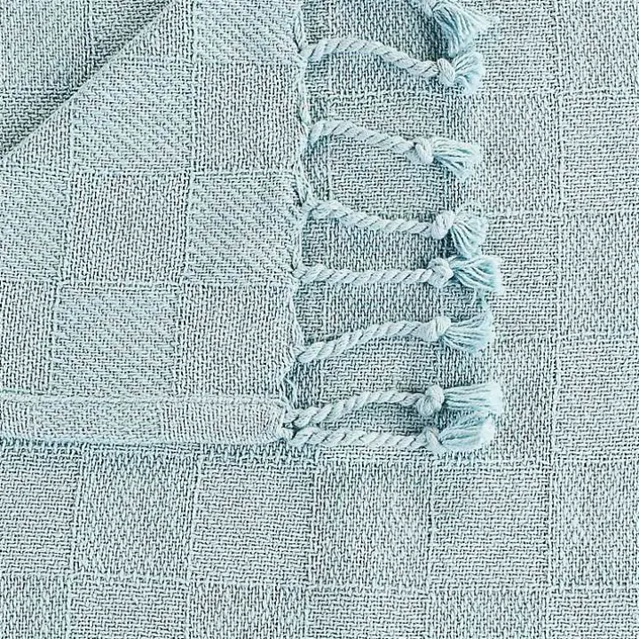 Curl up and get cozy with this delightfully soft throw blanket. The Light Blue Checkered Weave Fringe Throw has a beautiful, rich color and simple design that will complement any living space.