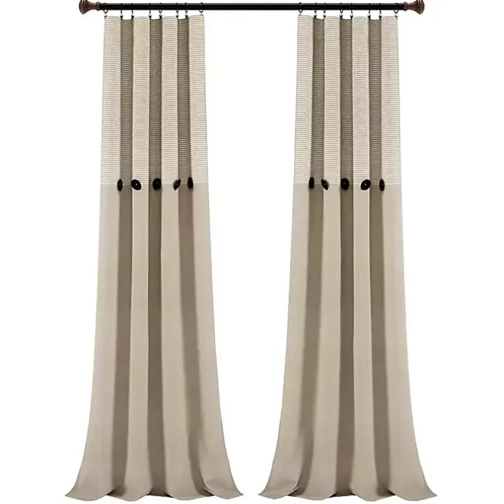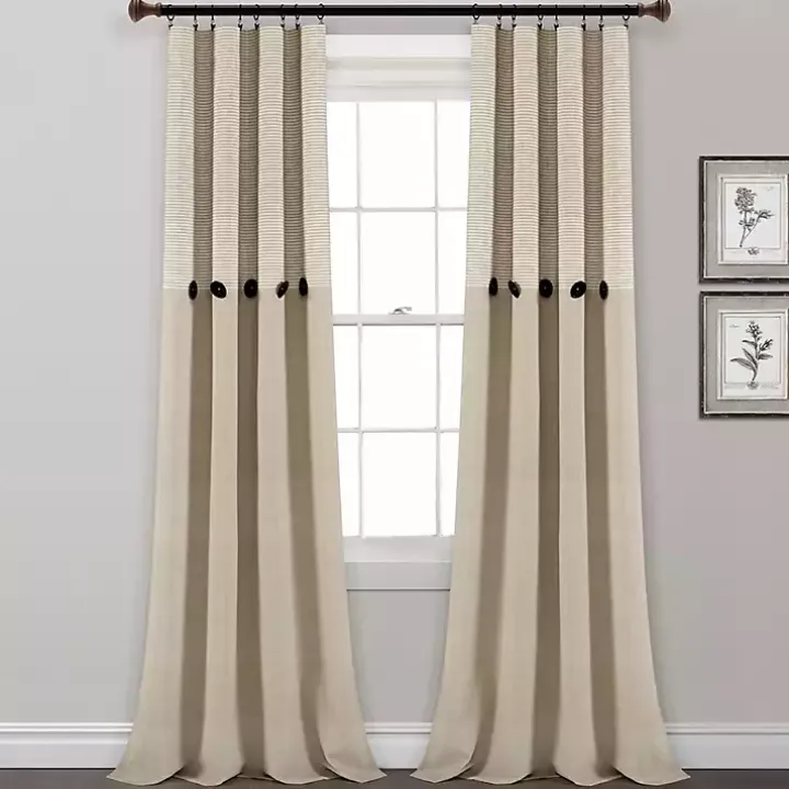 Our Linen Button and Stripe Curtain Panel Set will bring charming farmhouse style to your home. You’ll love how the button accents bring texture to any space!