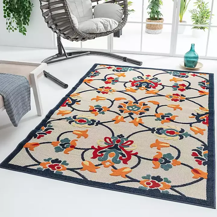 Add a sophisticated design to your patio floor with this Lyla Multi Floral Damask Indoor/Outdoor Rug! You’ll love how the bright pops of orange make your space look warm and inviting.