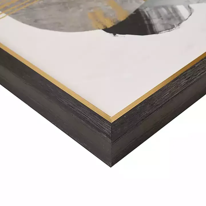 - Black and gold wood frame around wrapped canvas
