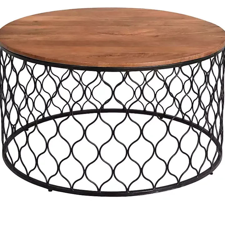Bring style and function to any room with this Mango Wood and Black Iron Coffee Table. Its stylish black netting base is sure to make this piece standout in any space. You’ll love how its wood finish gives rustic charm to this modern piece!