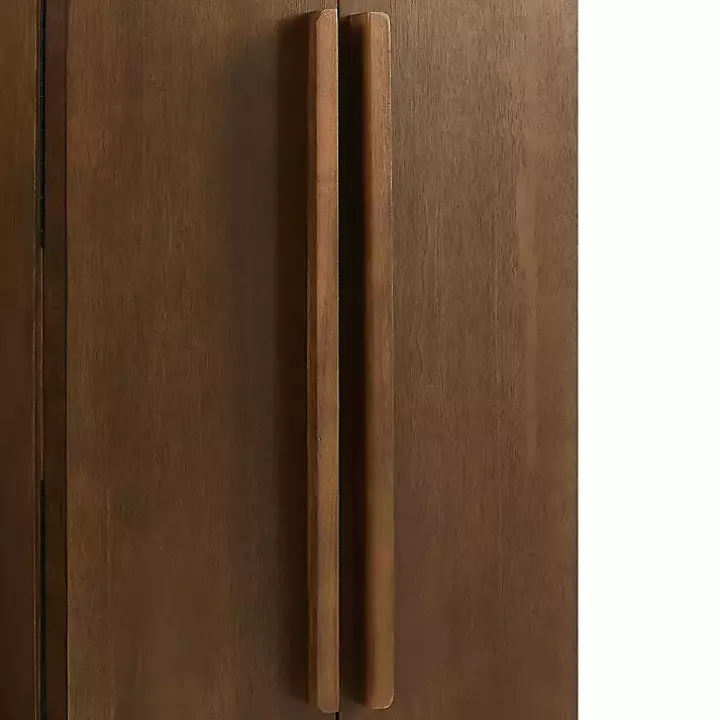 Experience a new level of jewelry organization and display with our Mid-Century Modern Walnut Jewelry Armoire! This armoire includes rows of hooks, a concealed storage compartment, drawers, and a vanity mirror to keep you organized!