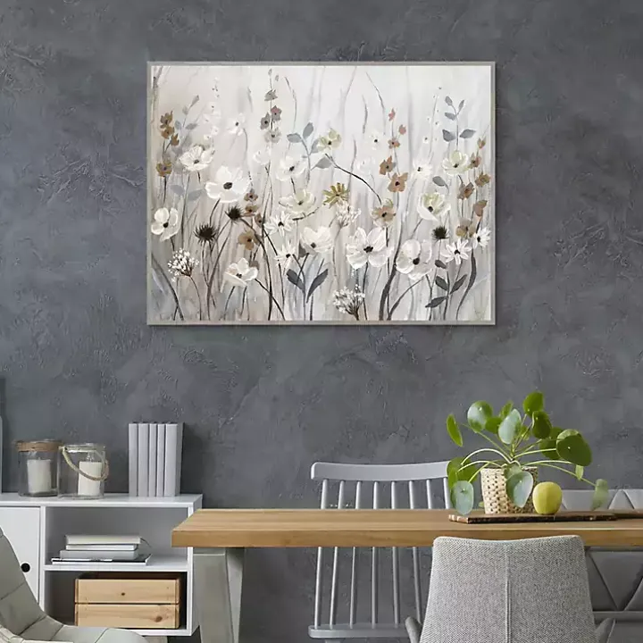 Make any space blossom with elegance by adding our Misty Meadow Framed Canvas Art Print to your walls! You’ll love how the neutral-colored petals seem to float off the canvas.