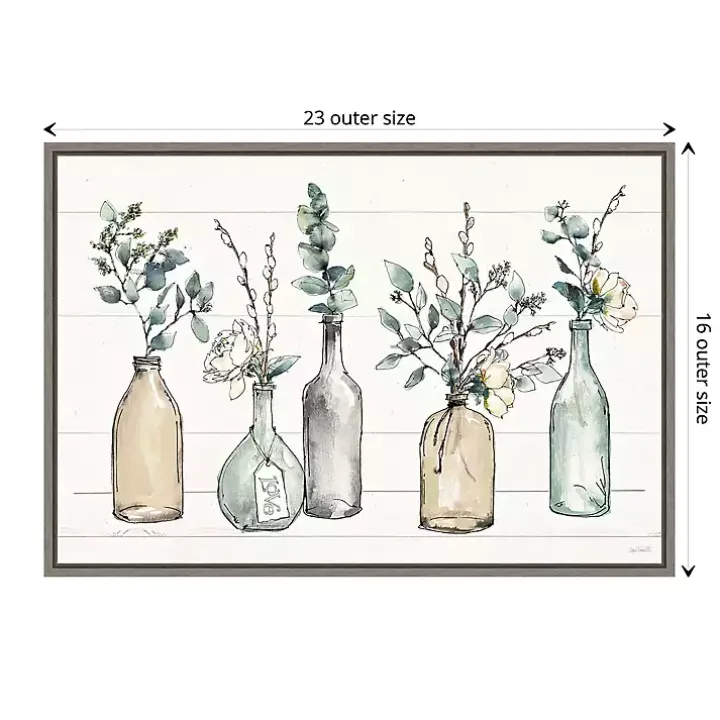 The Modern Farmhouse Floral Framed Canvas Art Print features a row of botanical arrangements on a shiplap style back. It’s the perfect way to make your dining space look fresh and elegant!