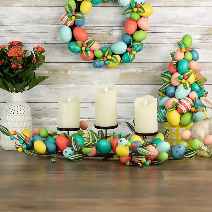 Create a bright and festive spring display with this Multicolor Easter Eggs Centerpiece! Accented with leaves, berries, and glitter detailing, it makes a cheerful statement!