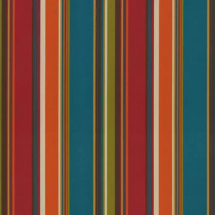 Accent your outdoor space this summer with this Multicolor Striped Outdoor Loveseat Cushion! Featuring colorful hues and asymmetrical stripes, this cushion will pop on your patio or porch!