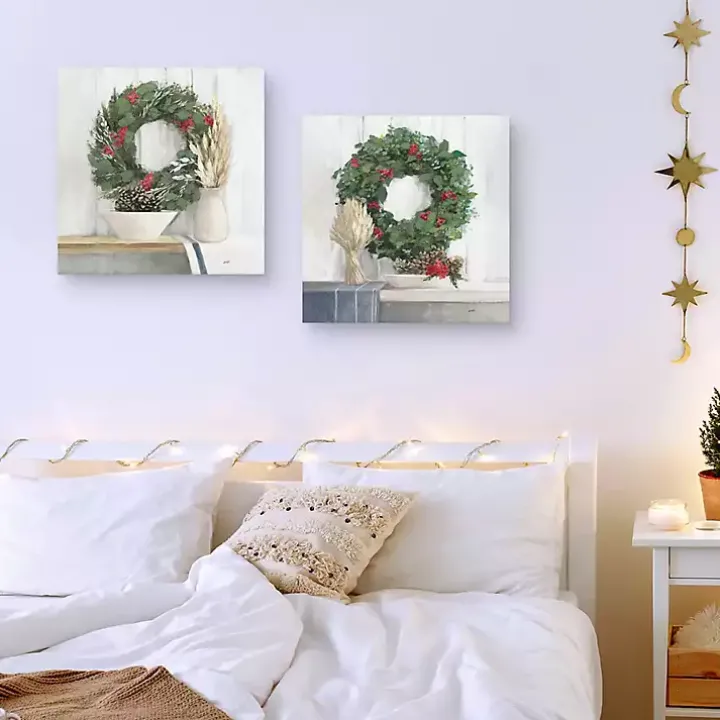 Whether you want to spread Christmas cheer throughout your home or create a festive centerpiece, the set of Natural Christmas Wreaths Canvas Prints will look perfect with your farmhouse-chic holiday style!