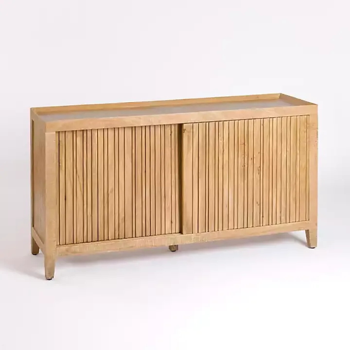 Elevate your space with our Natural Wood Hughes Sliding Door Cabinet! This stylish cabinet is the perfect storage solution for any room, from your living room as a media console to your dining room as a sideboard. You’ll love the dimension that the textured sliding doors bring to your home!