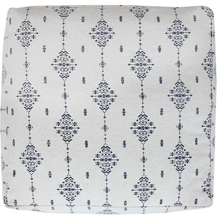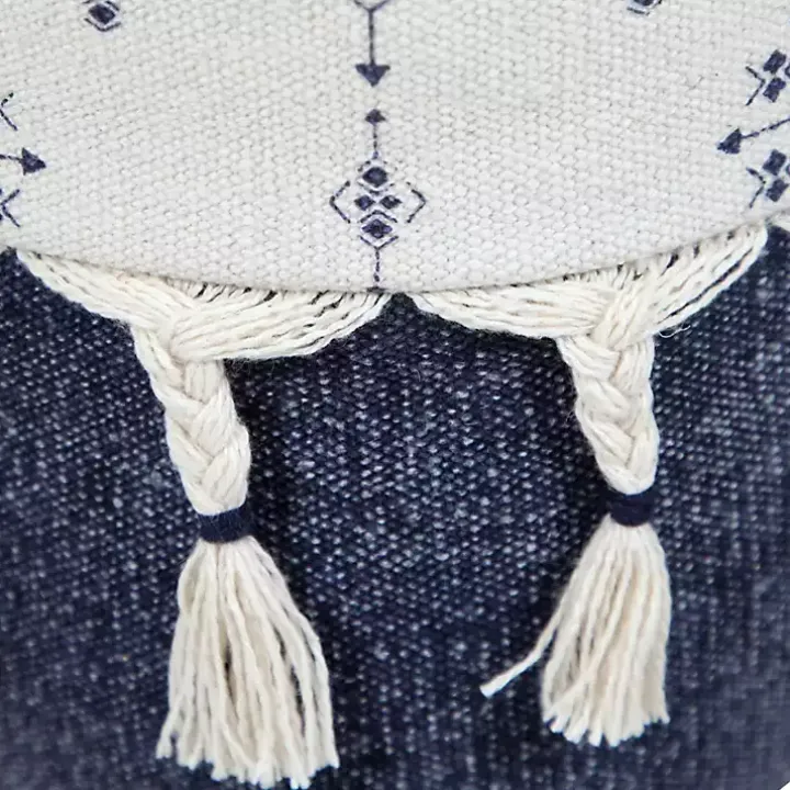 This Navy and Ivory Scandinavian Motif Pouf is a unique accent piece that is both stylish and versatile. Use it as an ottoman, extra seat, or simply a chic embellishment!