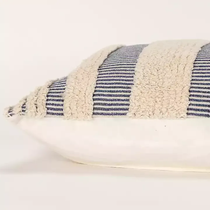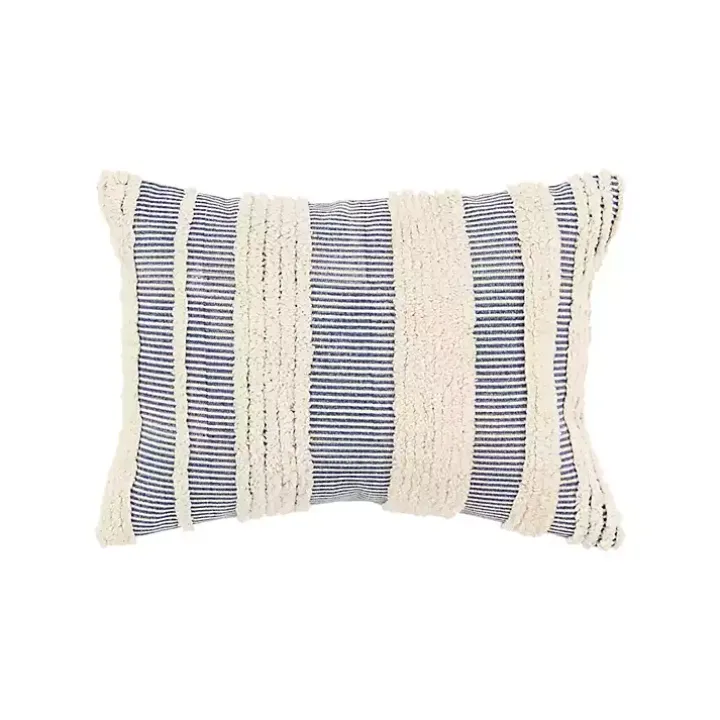 You’ll adore the soft texture and understated design of this Navy and Natural Tufted Stripes Lumbar Pillow. Style it anywhere from a sofa to a bench for a chic finishing touch!