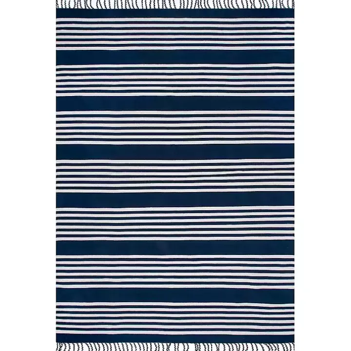 This Navy Blue Striped Tassel Cotton Area Rug is perfect for a modern living room or child’s play room! Made purely from cotton, this rug is stylish element that is soft to the touch.