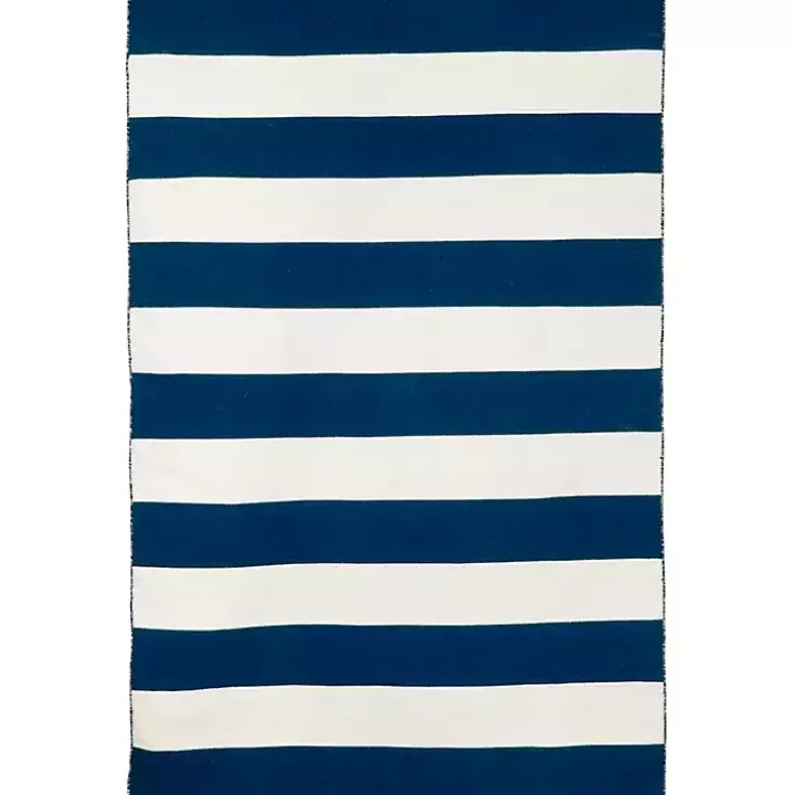 Tie any space together with the aesthetic appearance of our Navy Cabana Stripe Indoor/Outdoor Area Rug! The nautical tones and classic pattern are what make this rug great. Plus, you’ll love the hand woven, reversible design.