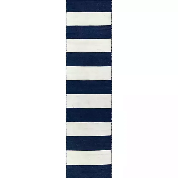 Step out onto your porch with style! Our Navy Cabana Stripe Indoor/Outdoor Runner features nautical colors and a classic pattern, making it perfect for a coastal-inspired space.