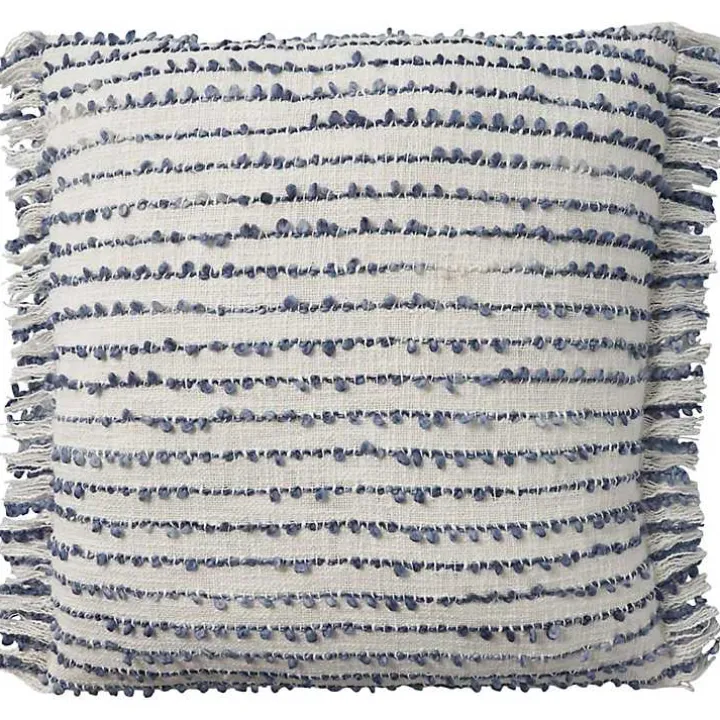 Add a fun pop of texture and contrast with our Navy Handstitched Stripes Throw Pillow! The mix of hues and stitching will bring chic style and coastal flair to your space!