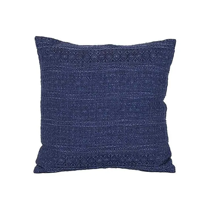 Embolden the vibe of your outdoor oasis with our handcrafted Navy Woven Geo Stripe Indoor/Outdoor Pillow. Its dramatic color and inconspicuous but intricate design make for the perfect stylish accent on any couch, chair, or bed.