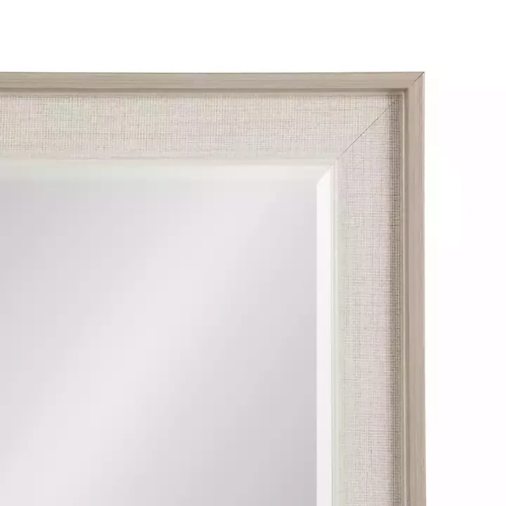 Our Neutral Linen Beveled Wall Mirror boasts a modern transitional design with a lovely finish! The subtle patterned texture and beveled edge add an elegant touch to this mirror, making it a stylish and sophisticated addition to any room.