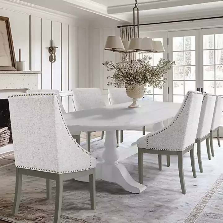 Upgrade your dining room with this Neutral Upholstered Barrel Dining Chair! With sophisticated details like nailhead trim and an armless design, this chair will effortlessly elevate your space.